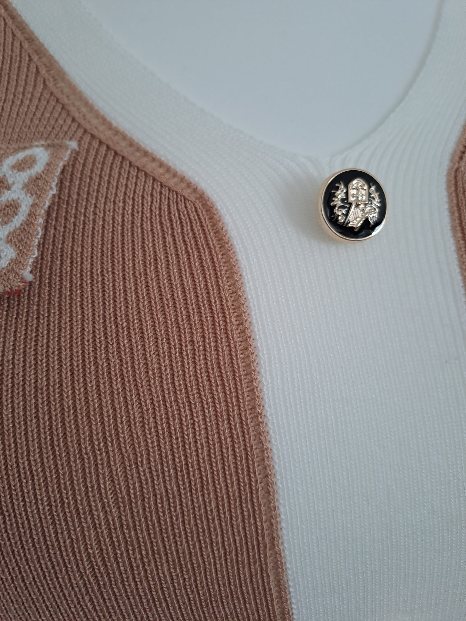 This formal knitted summer dress combines elegance and comfort with breathable woolen fabric, making it ideal for both formal and casual occasions. Featuring striking black and gold statement buttons, it adds a sophisticated touch to your wardrobe. Designed as one size fits all, it offers versatility and ease of wear without compromising style. Light material perfect for summer