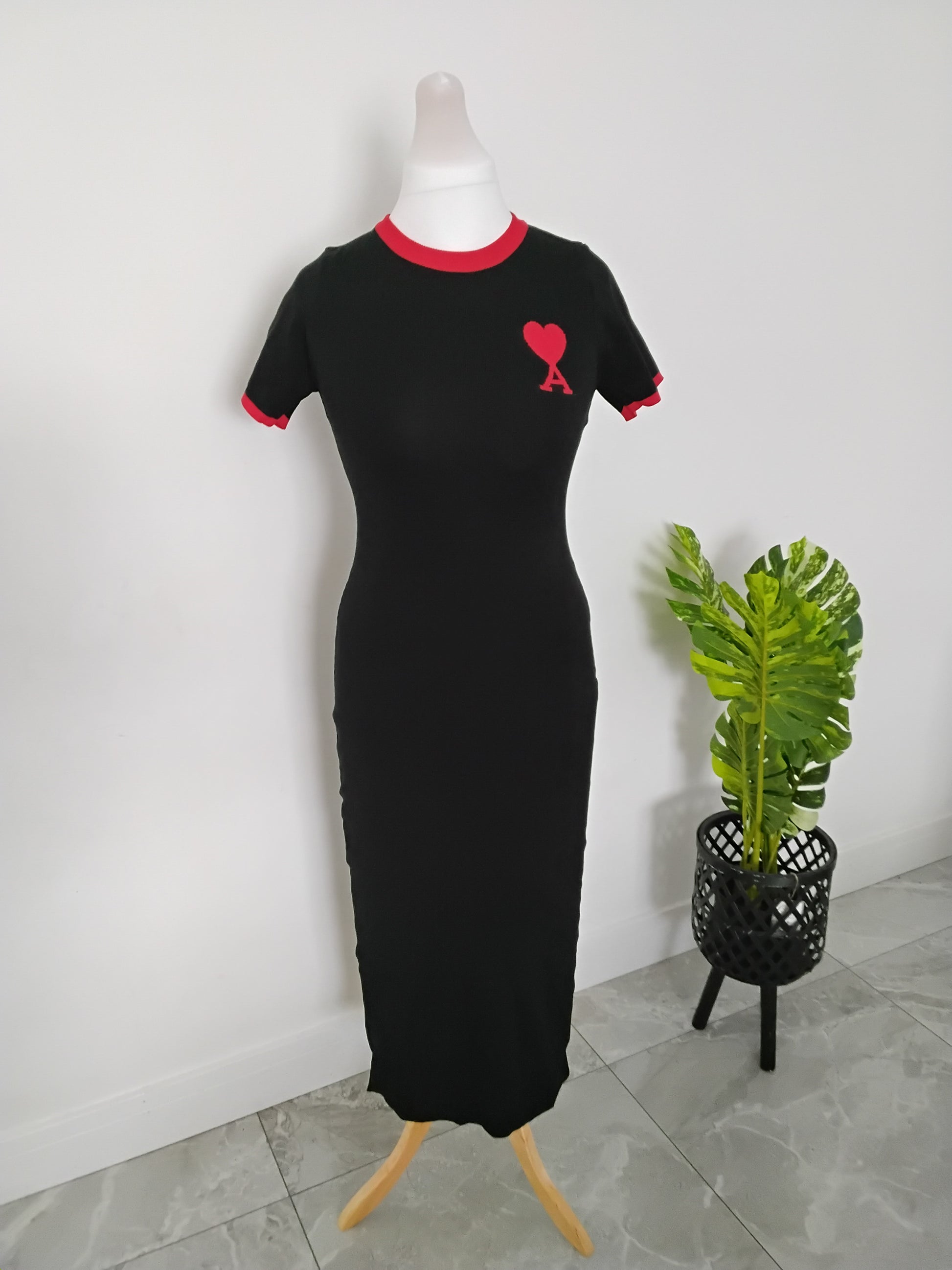 This Soft Knit Summer Dress combines elegance with comfort, crafted from breathable fabric ideal for warm days. Its full-length design offers a graceful silhouette, while the feminine red heart detail and matching red accents on the neckline and sleeves add a subtle yet striking touch. Perfect for relaxed days at home or casual outdoor occasions, this one-size dress ensures both style and ease throughout the summer season.